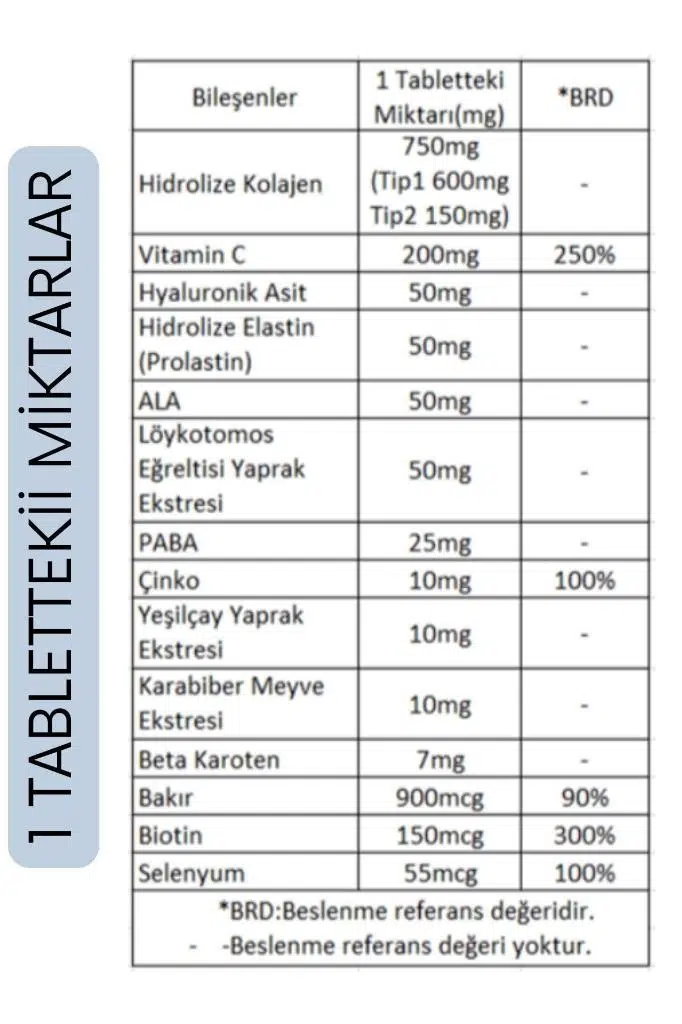 Tip1tip2 Hidrolize Kolajen+Hyaluronik Asit+c Vitamini Içeren 30 Tablet Gıda Takviyesi