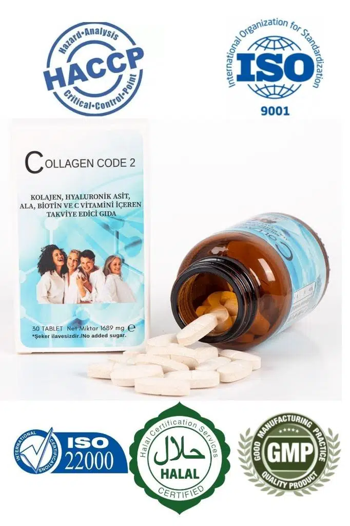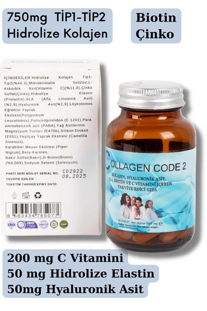 Etiketler | Collagen Code2 Tip1tip2 Hidrolize Kolajen+hyaluronik Asit+c Vitamini Içeren 30 Tablet Gıda Takviyesi |