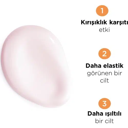 Hassas ciltler için uygundur. C Vitamini ile zenginleştirilmiş kırışıklık karşıtı formülü ile cildin daha elastik ve ışıltılı olmasını sağlamaya, cildi güneş ışınlarından korumaya yardımcıdır. Hipoalerjeniktir. Yağlı his bırakmaz. Yüz için kullanılır. Vichy Mineral Termal Suyu içermektedir.