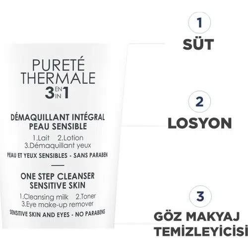 Purete Thermale Temizleyici 1-Temizleyici süt 2-Tonik losyon 3-Göz makyaj temizleyicisi Mükemmel şekilde makyaj kalıntılarını çıkarır ve temizler.Cilt ferahlar,yumuşar ve rahatlar. .Dermatolojik ve oftalmolojik kontrol altında hassas ciltler üzerinde test edilmiştir. Yatıştırıcı, güçlendirici ve yenileyici Vichy Termal Spa Suyu ile güçlendirilmiştir. Kontakt lens kullanıcıları için uygundur.